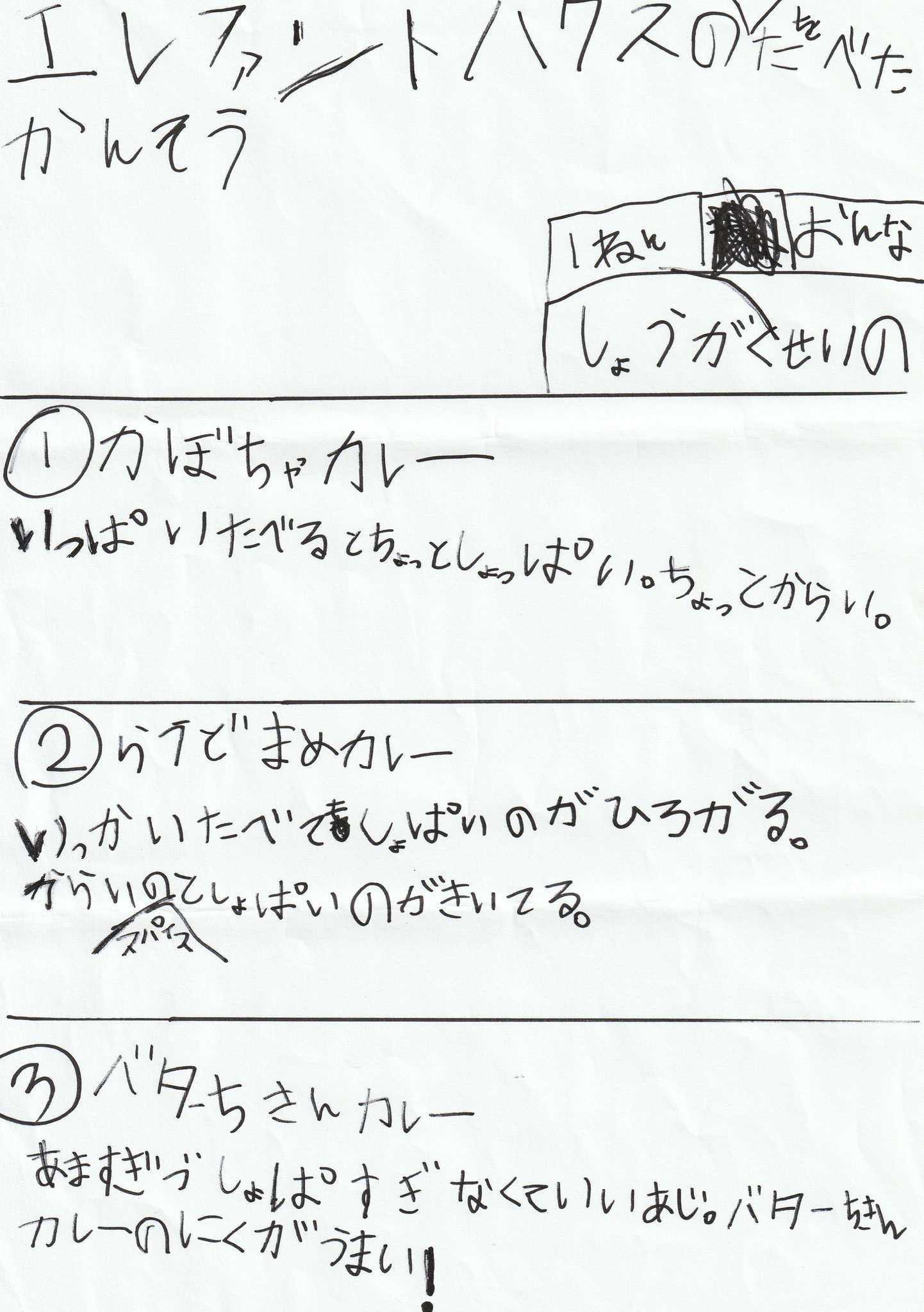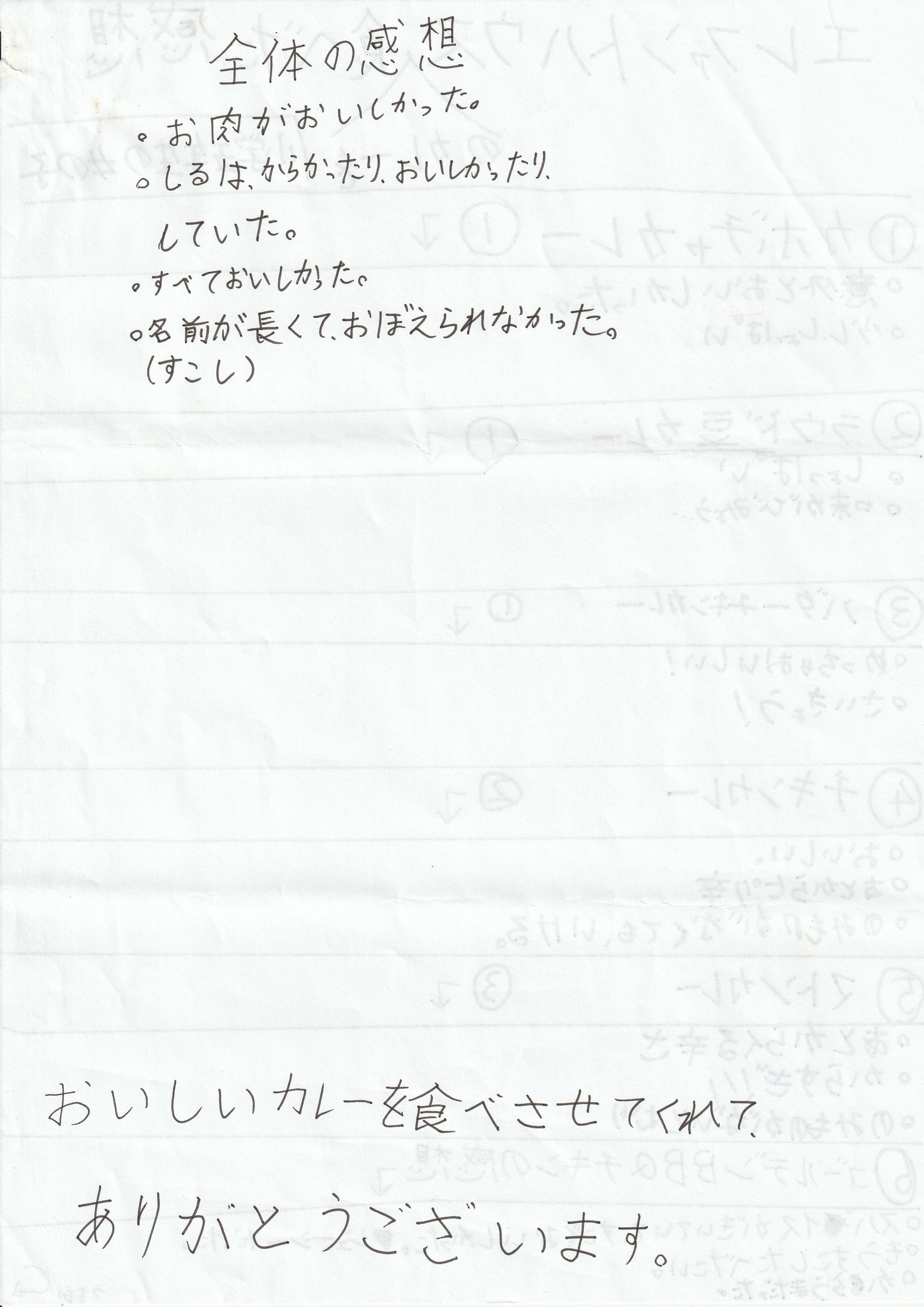 実際にお召し上がりいただいたご家族からは、ごきょうだい3人による手書きのレポートもお送りいただきました。食べた感想を丁寧に表現してくださり、スタッフ一同大変うれしく思っております。そのレポートは現在も大切に保管しています。